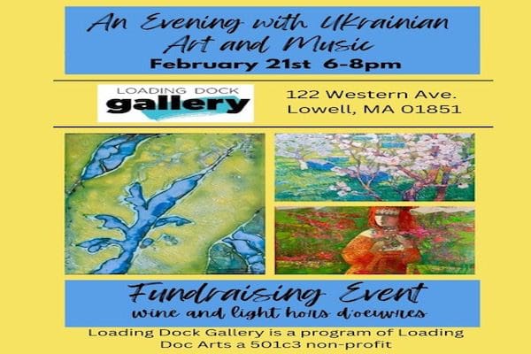 LOADING DOCK gallery at Western Avenue Studios 122 Western Ave, 2nd floor , Lowell, MA 01851 Affirmation of Life Fundraising Event: 6-8pm February 21st Please join us, in partnership with the Ukrainian Cultural Initiative’s Nataliya Proskura and Vladislav Shapiro, for this evening of art and music from Ukraine. This show highlights the compelling artwork of […]