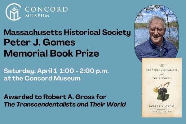 Join us at the Concord Museum for the ceremony of the Massachusetts Historical Society’s 2022 Peter J. Gomes Memorial Book Prize awarded to Robert A. Gross for his book "The Transcendentalists and Their World", published in 2021 by Macmillan Publishers. The Peter J. Gomes Memorial Book Prize is given to the best nonfiction work on […]